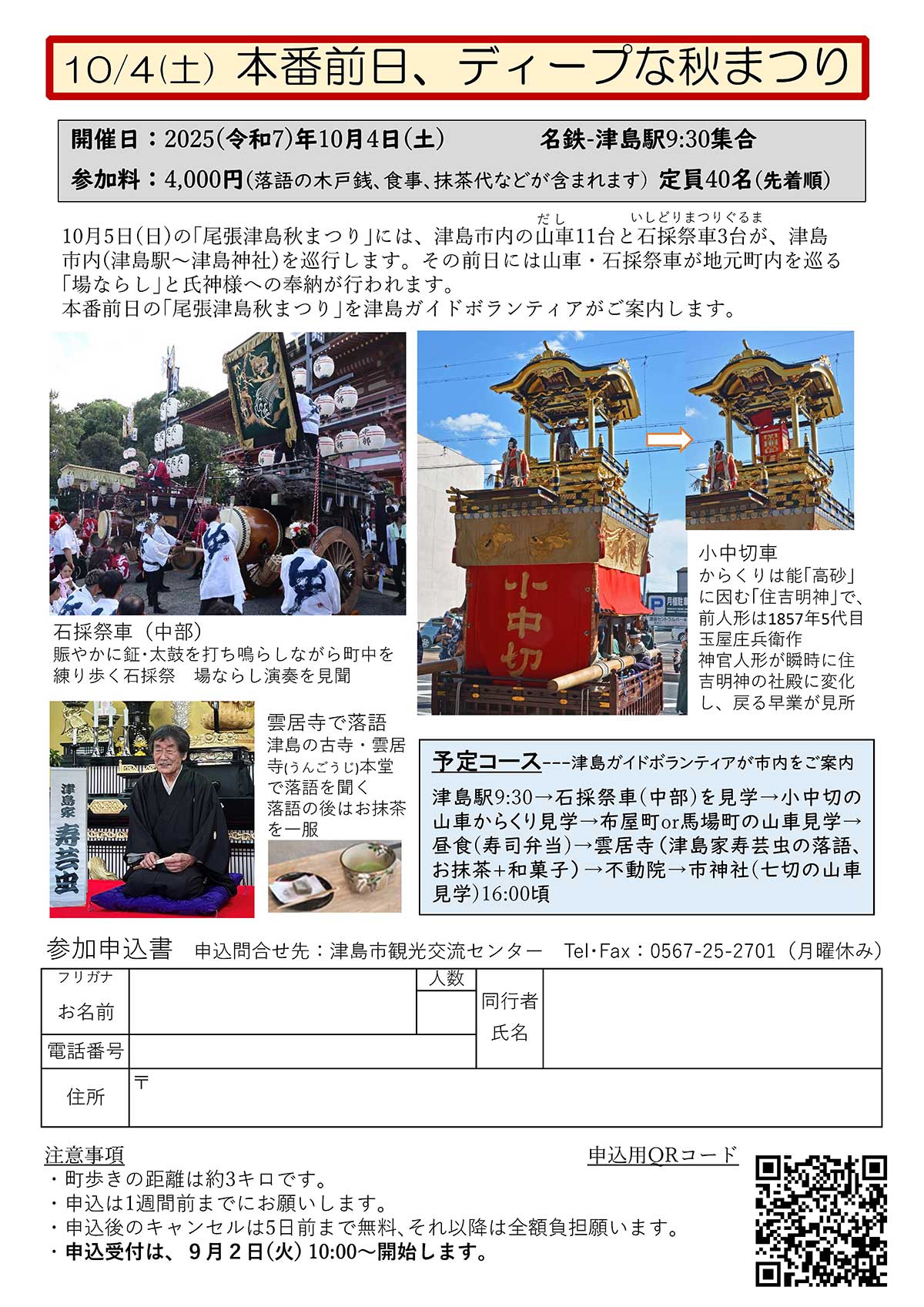 (令和7)10/4(土)本番前、ディープな秋まつり ツアー参加者募集!!